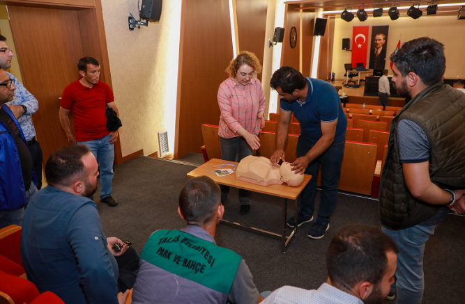 Belediye personeline ilk yardımın önemini anlatan ve acil yardım ile ilk yardımın farklı konular olduğunun altını çizen sağlıkçılar, acil yardımın sağlık personelleri tarafından, ilk yardımın ise kazazedenin yardımına koşan kişiler tarafından yapılabileceğini ifade etti.
