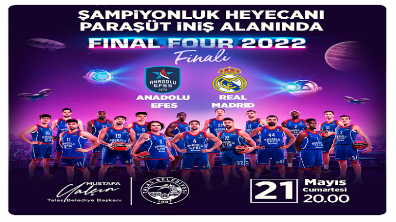 Talas Belediyesi, THY Avrupa Ligi Dörtlü Final organizasyonunda yarın şampiyonluk maçına çıkacak Anadolu Efes'in karşılaşmasını izletmek için dev ekran kuracak.