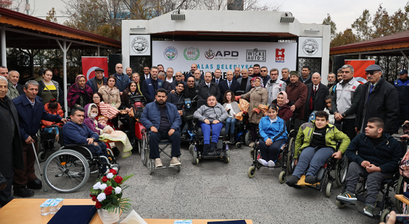 Talas Belediyesi, İHH ve hayırseverlerin desteğiyle temin edilen engelli araçları Esma Hatun Sosyal Tesisinde gerçekleştirilen törenle teslim edildi.