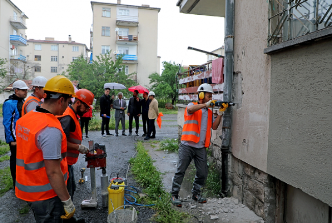 Talas Belediyesi, ilçede belirlenen kentsel dönüşüm bölgelerinden karot örnekleri alarak riskli yapıları tespit etmeye başladı.