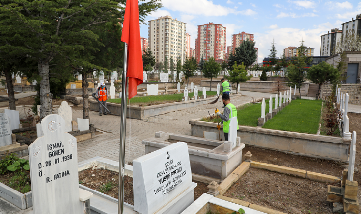 Talas'ın mezarlıklarında Bayram hazırlığı