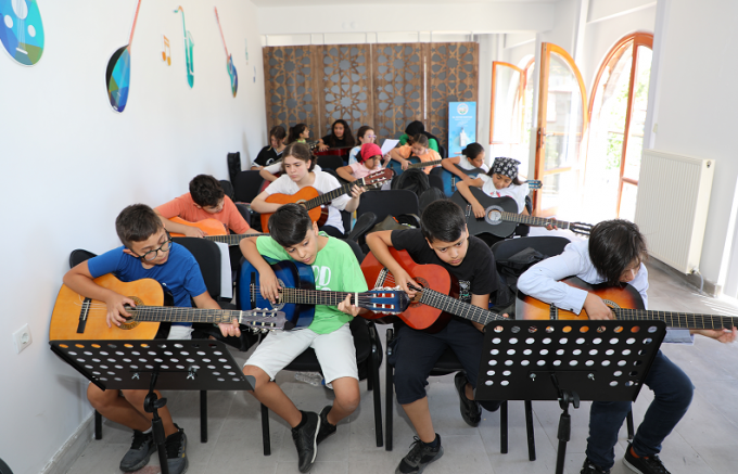 Hafta içi her gün 09.00-16.00 saatleri arasında devam eden kurslarda toplam 117 öğrenci enstrüman çalmayı öğreniyor.