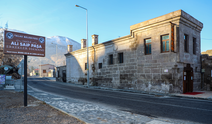 Han Mahallesi Erhan Caddesi üzerinde bulunan ve 19. yüzyılda yapıldığı tahmin edilen Talas Belediyesi Tarihi Ali Saip Paşa Erkekler Hamamı mistik havasıyla büyülüyor.