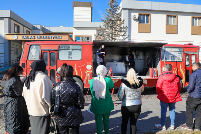 Eğitim programında parlama, patlama, yangın ve yangından korunma yöntemleri anlatıldı. Ayrıca belediye bahçesinde de tatbikat yapılarak mutfakta ve diğer alanlarda oluşabilecek yangınlarda yapılması gerekenler hakkında uygulamalar gösterildi.