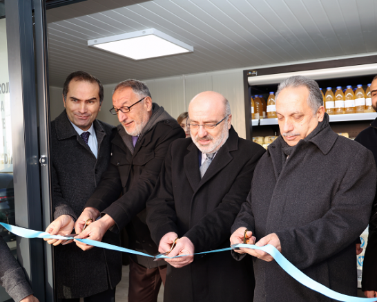 Konuşmaların ardından satış merkezinin kurdelesi kesildi. Ardından Başkan Yalçın, tadına baktığı bazı ürünlerden satın aldı.
