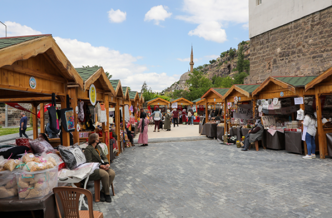Gerek el işi gerek ahşap ürünleri gibi pek çok el emeği ürünün satışa sunulduğu pazarda ev yemeklerinden süs eşyalarına kadar birçok ürün de alıcı bekliyor.