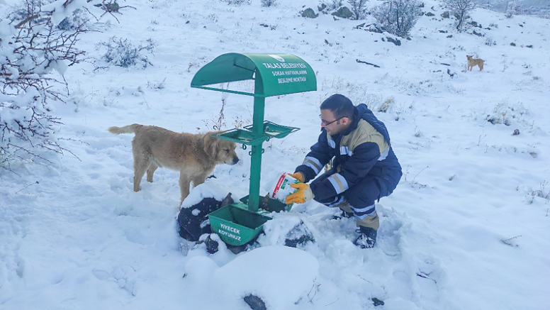 Bu kapsamda Talas genelindeki 40 ayrı bölgede bulunan besleme noktalarına kuru mama, yemek ve ekmek bırakılıyor. Böylece kışın zorlu şartlarında hayvan dostların aç kalmaması hedefleniyor.