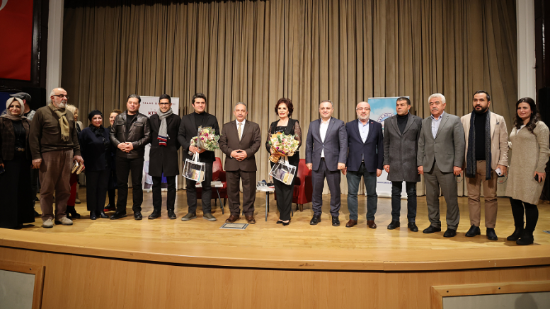Söyleşi programının kapanışında sahneye gelen Başkan Yalçın, Hülya Koçyiğit ve Selahaddin Yusuf’a Talas'ı ve Kayseri'yi tanıtan kitaplar ile birlikte çiçek hediyesinde bulundu.