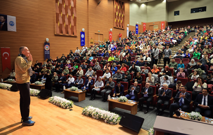 “Bugün değerli Orhan Hocamızdan çok istifade edeceğimizi düşünüyorum.” diyen Başkan Yalçın şöyle konuştu: “Bu programa gönüllü gelen insanların artık birileri tarafından dizayn edilmelerine karşı koymak üzere donanmak istediklerini memnuniyetle görüyorum. Yakın zamana kadar olmayan bir z kuşağı tanımlaması ortaya çıktı. Gençlerimizi tanımlarken şöyle olsun der gibi gayriinsani, gayri teknik, gayri toplumsal durumlara götürmek isteyen bir grup var. O nedenle bugün buralara giden yollarda hangi teknolojik araçlar kullanılıyor bunları öğreneceğiz. Hocamıza yoğun programlarının arasında geldiği için çok teşekkür ediyorum.”