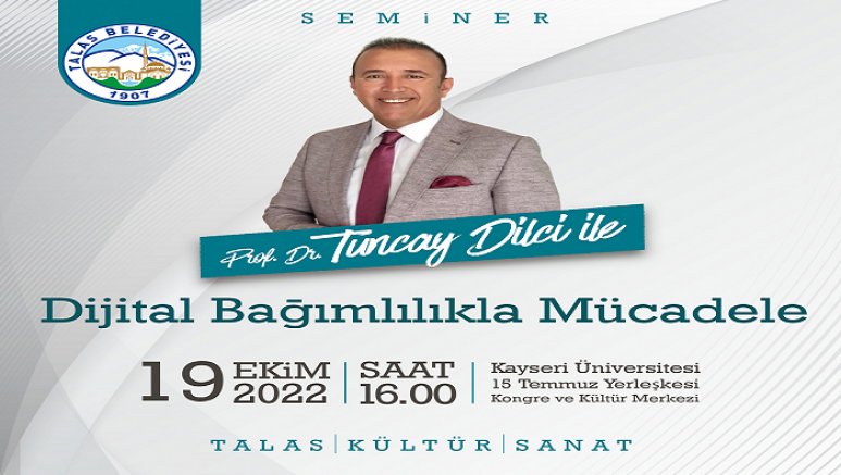 Talas Belediyesi tarafından düzenlenen programla “Dijital Bağımlılıkla Mücadele” konulu seminer gerçekleştirilecek.