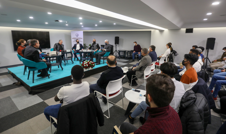 Bu ayki kitap sohbetleri buluşmasında Uluslararası Ömer Halisdemir İmam Hatip Lisesi öğrenci ve öğretmenleri de katıldı.