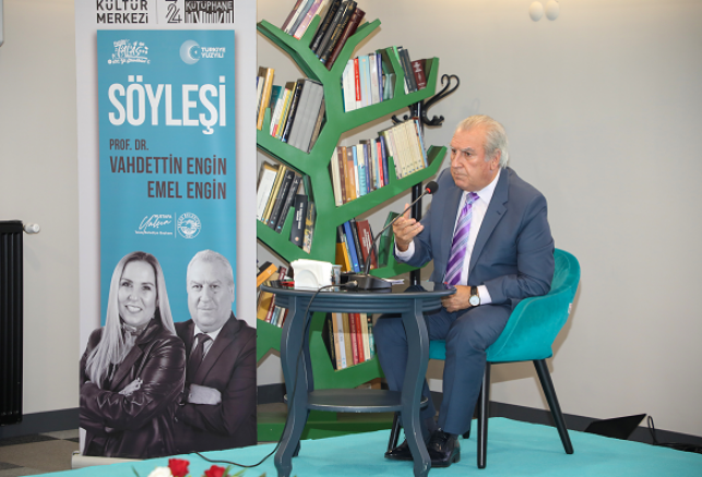 Talas Belediyesinden yapılan açıklamaya göre, 6. Kayseri Kitap Fuarı için şehre gelen Prof. Dr. Vahdettin Engin ve tarihçi yazar Emel Engin, Talas 7/24 Kütüphane ve Kültür Merkezi’nde bulunan çok amaçlı toplantı salonunda düzenlenen programa katıldı.