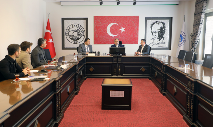 Başkanlık Toplantı Salonu’nda gerçekleşen toplantıya Talas Belediye Başkanı Mustafa Yalçın’ın yanı sıra başkan yardımcıları, birim müdürleri ve ilgili personel katıldı.