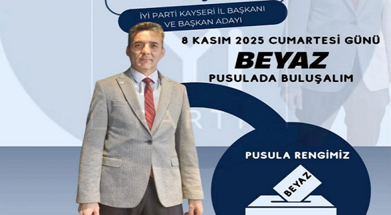 İYİ Parti Kayseri İl Başkanlığı seçimi, 8 Kasım 2025 Cumartesi günü Gültepe Kültür Merkezi’nde gerçekleştirilecek. Pusula rengi “Beyaz” olarak açıklandı.
