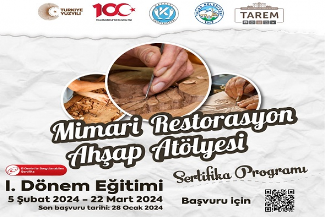 Merkezin mimari restorasyon ahşap, demir ve taş atölyesi birinci dönem sertifikalı eğitim programlarına kayıtlar 28 Ocak’ta sona erecek. 5 Şubat-22 Mart arasındaki ilk dönem eğitim programına kayıt yaptırmak isteyenler www.kaysem.kayseri.edu.tr adresinden veya 0352 432 3838-42340 numaralı telefondan detaylı bilgi alabilir.