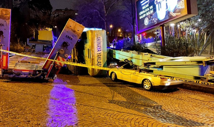 Beşiktaş’ta seyir halindeki tırın üzerinde bulunan iş makinesi, park halindeki 3 otomobilin üzerine düştü.