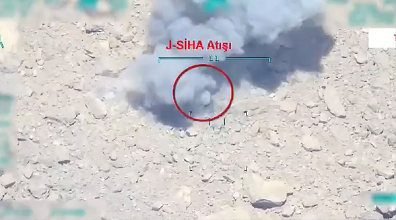 İçişleri Bakanlığı, SİHA destekli operasyonun, teröristlerin vurulma anına ilişkin görüntülerini de paylaştı.