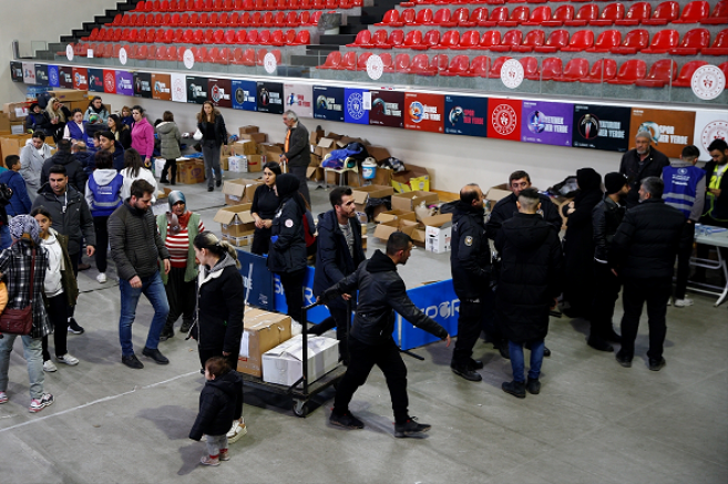 Burada gönüllü gençler tarafından ayrıştırılan malzemeler, tekrar tırlara yüklenerek deprem bölgelerine gönderiliyor. Bu malzemelerin bir kısmı, Kayseri'de misafir edilen depremzedelere de veriliyor.
