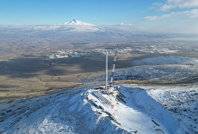 Kayseri, Türkiye’nin toplu ulaşım sektöründeki ilk Rüzgâr Enerji Santrali (RES) projesine ev sahipliği yapmaya hazırlanıyor. İzmir Alsancak Limanı’ndan yola çıkan 80 araçlık dev türbin sevkiyatının parçaları peyder pey Kayseri’ye ulaşmaya devam ediyor. Türkiye’nin enerji geleceği için önemli bir adım olan bu projede, dev türbin parçaları kente getirilirken, montaj işlemleri de hızla devam ediyor.
