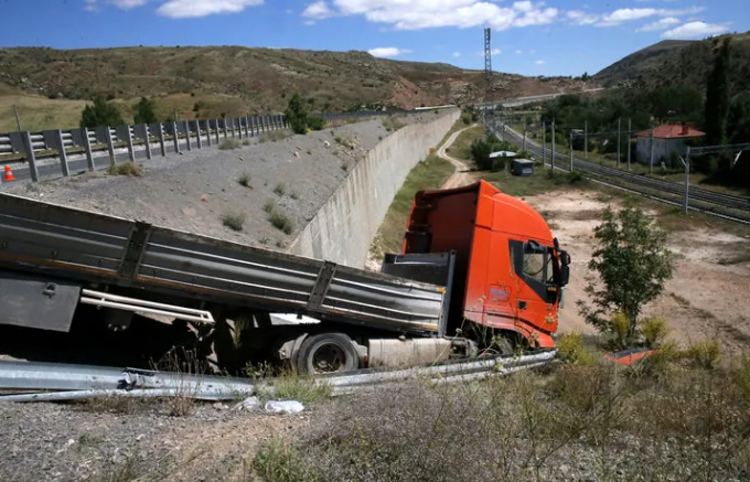 D.S. (63) yönetimindeki 58 BG 680 plakalı beton blok yüklü tır, Sivas-Kayseri kara yolu Taşlıdere mevkisi Yassıcabel köyü yakınlarında, yol kenarındaki bariyerlere çarptıktan sonra yaklaşık 30 metrelik uçurumun kenarında asılı kaldı.