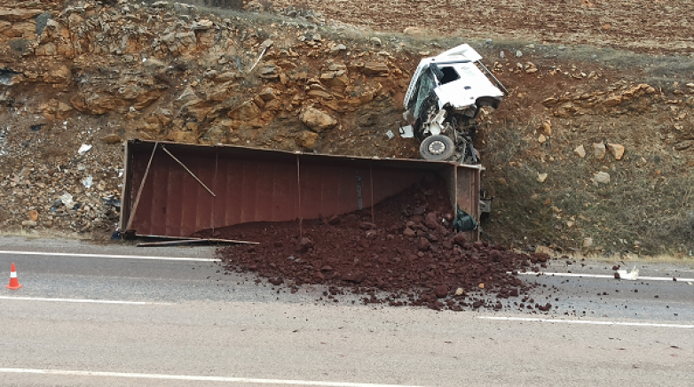 Seyit K. yönetimindeki maden yüklü 38 F 2909 plakalı kamyon, Büyük Ayvan mevkisinde kontrolden çıkarak şarampole devrildi.