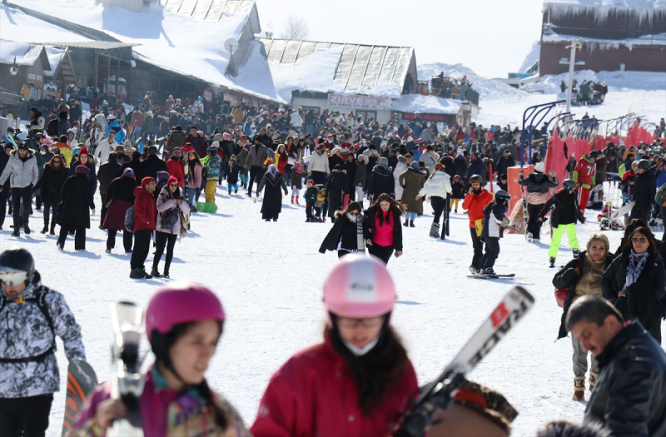 Kayseri Büyükşehir Belediyesince uygulanan master planı kapsamındaki yatırımlarla uluslararası standartlarda kayak merkezine dönüştürülen Erciyes, yarıyıl tatilinde yoğun talep gördü.