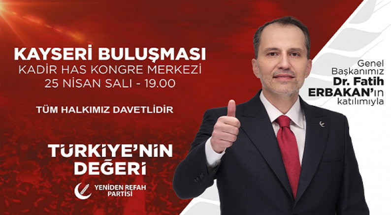 Yeniden Refah Partisi Genel Başkanı Dr. Fatih Erbakan, il buluşmaları kapsamında 25 Nisan 2023 Salı günü Kayseri’ye gelecek.