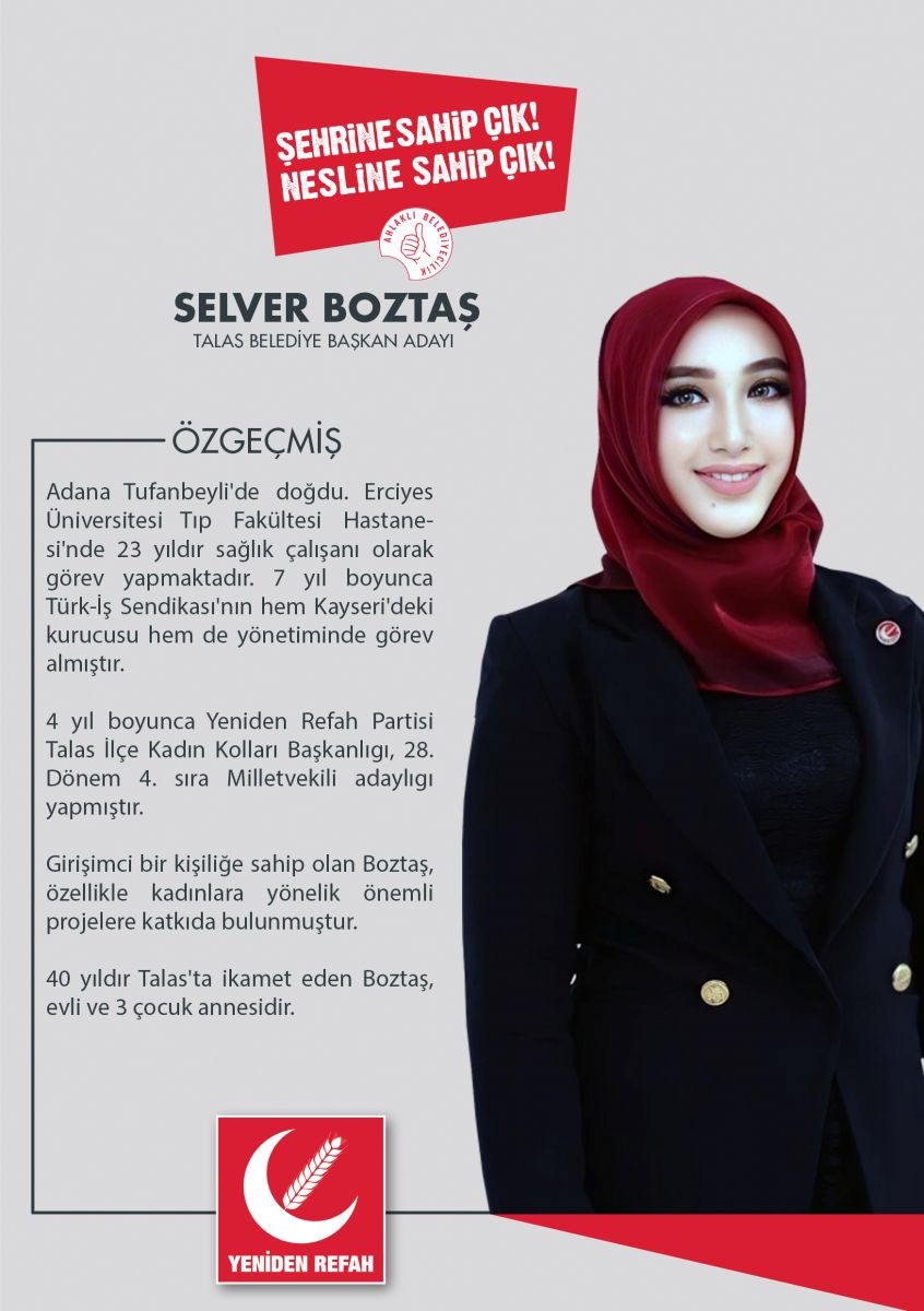 Selver Boztaş Yeniden Refah Partisi Talas Belediye Başkan Adayı olarak açıklandı.