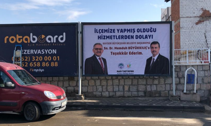 Kayseri Büyükşehir Belediye Başkanı Dr. Memduh Büyükkılıç’ın, 16 ilçe belediye başkanı ile birlik, beraberlik ve dayanışma içerisinde yürüttüğü yatırım ve hizmetlerine bir ‘teşekkür’ de Yeşilhisar ilçesinden geldi. Yeşilhisar Belediye Başkanı Halit Taşyapan, ilçeye yapılan hizmetlerden dolayı Başkan Büyükkılıç’a billboard afişleri ile teşekkür etti.