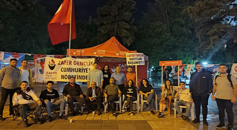 Zafer Partisi gençliği ve il teşkilatı mensupları cumhuriyetin 100. Yılı dolayısıyla 4 gün geceli gündüz bayrak nöbeti tuttu.