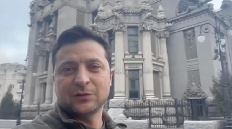 Ülkesini terk ettiğine ilişkin bilgileri yalanlayan Zelenskiy, "Ben buradayım ve silahlarımızı bırakmayacağız. Devletimize sahip çıkacağız. Çünkü silahımız hakikattir. Hakikatimiz de bu topraklar, ülke ve çocukların bizim olmasıdır. Tüm bunları koruyacağız." ifadelerini kullandı.